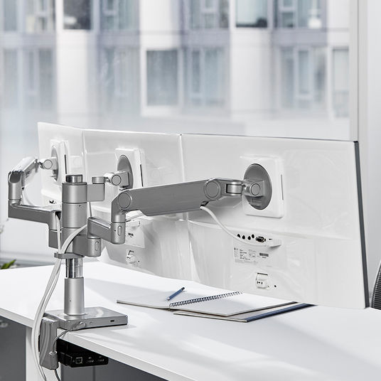 M/Flex提供輕鬆的調節並支援簡便、自發的配置。憑藉“隨插即用”的定制系統,M/Flex能令使用者根據需要添加支架、附件和配件。M/Flex可與現代不斷演變的工作空間完美匹配,如搭配M/Connect™顯示器支架底座,用戶能夠徹底消除淩亂的線纜,隨心使用USB埠和高速充電裝置。